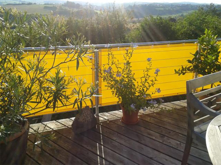 Unsere Balkonbespannungen werden individuell nach Maß gefertigt und bestehen aus robusten, UV-beständigen Stoffen, die einfach zu reinigen und witterungsbeständig sind.